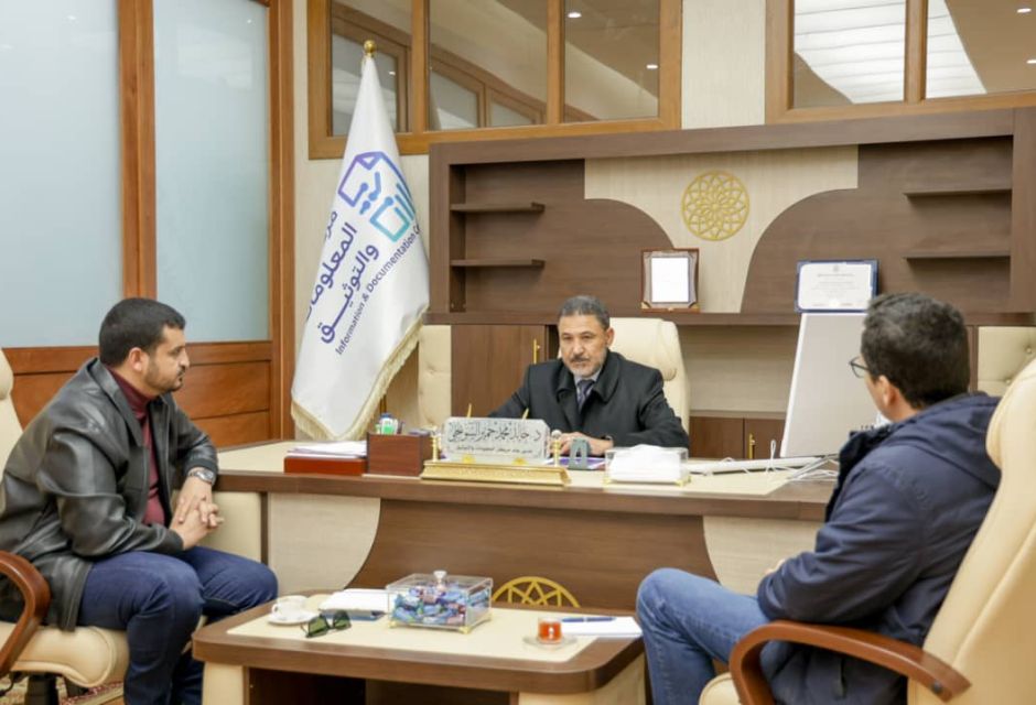 عقد مدير مركز المعلومات والتوثيق الدكتور “خالد حمير السويحلي” اجتماعًا مع وفد من شركة ليبيا للاتصالات والتقنية (LTT)، خُصص لبحث آخر مستجدات الربط الشبكي ومتابعة الجوانب الفنية المرتبطة بتطوير البنية التحتية للاتصالات.