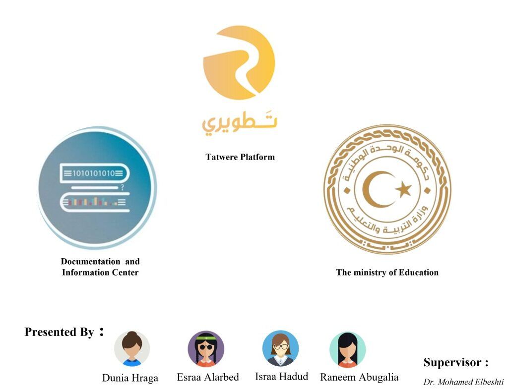 ساهم عدد من طلبة الأكاديمية الليبية بمشروع تخرج بعنوان { منصة تطويري } تحت إشراف الدكتور محمد البشتي، والتي سيعمل عليها المركز في الفترة المقبلة ضمن برامج التحول الرقمي لوزارة التربية والتعليم التي يشرف على تنفيذها مركز المعلومات والتوثيق.
