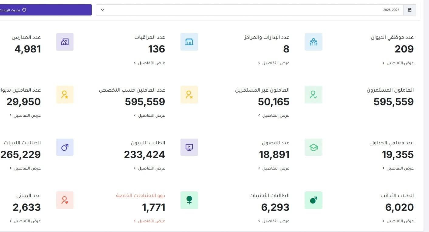 منظومة التعليم تكشف عن إحصائيات العام الدراسي 2025–2026م